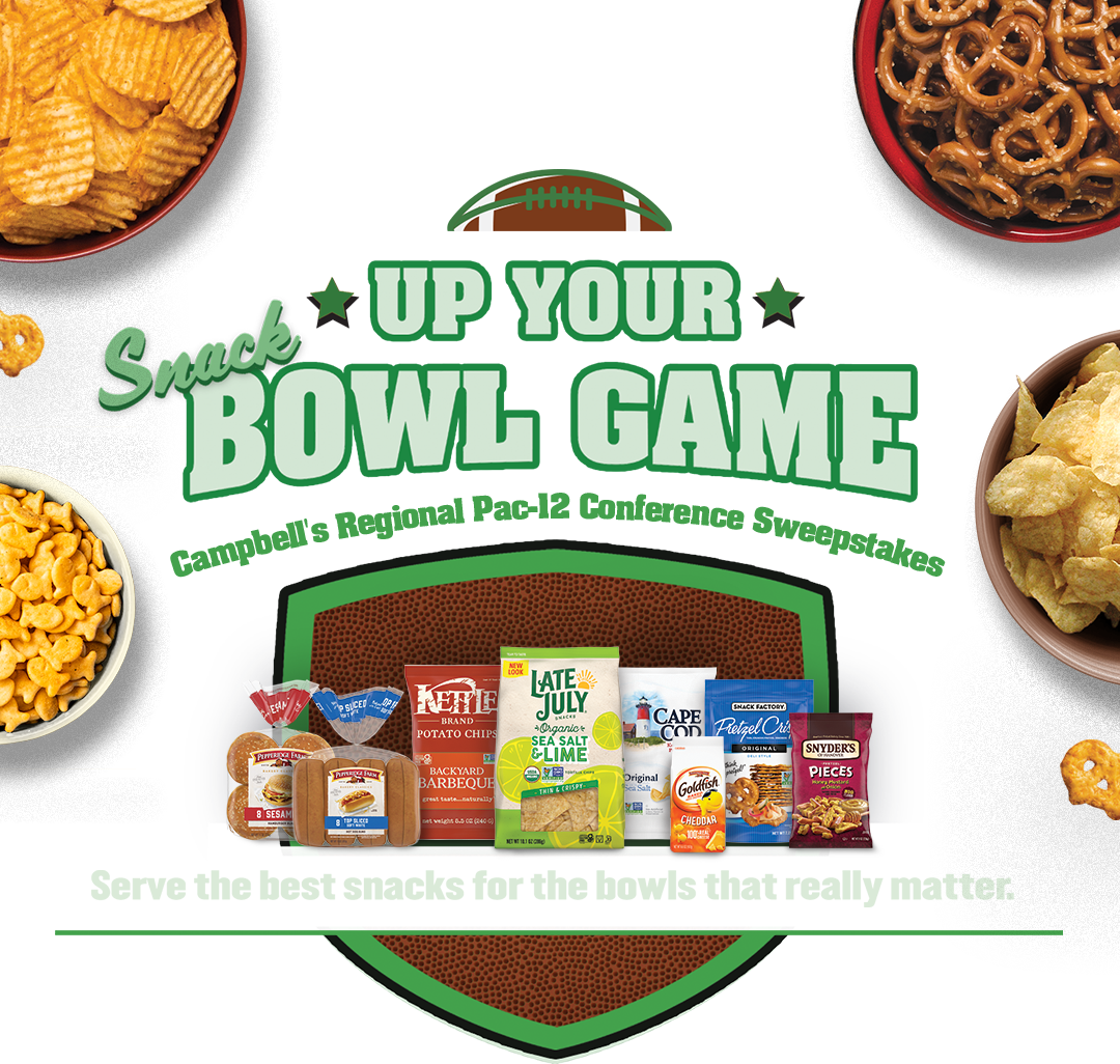 *NO PURCHASE NECESSARY. Grand Prize to be awarded in a random drawing from entries received by 11:59 pm ET on 10/31/22. Open to legal residents of 50 US & DC who are 21+ at time of entry. Void where prohibited. Weekly Prizes awarded through 2/13/23. Scan the QR code or visit www.upyourbowlgame.com/pac12 to enter & for Official Rules & details. Transportation, hotel and parking are not included in Grand Prize. Sponsor: Campbell Soup Company.